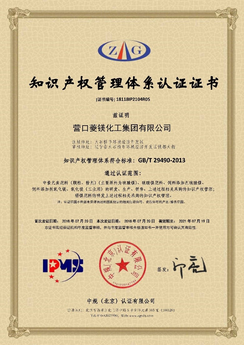 營口菱鎂化工集團通過知識產(chǎn)權貫標認證