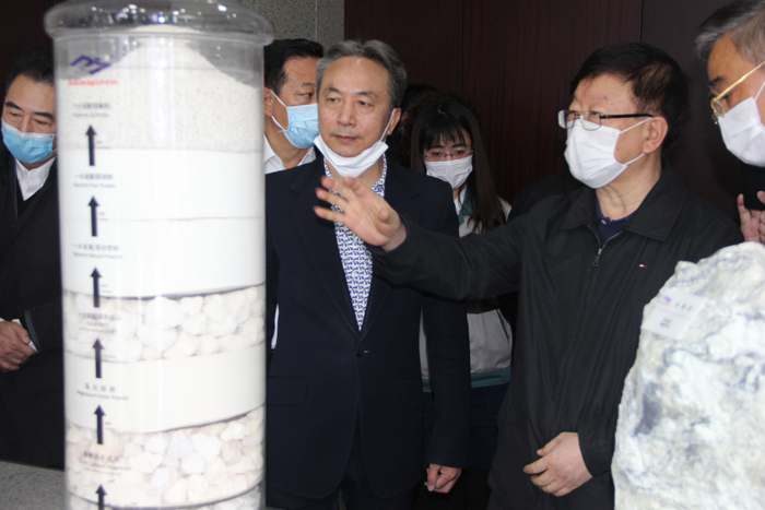 2020年4月8日上午,全國政協常委、遼寧省政協副主席李曉安、遼寧省政協教科衛體委員會主任藺曉剛、遼寧省科技廳副廳長王學來、遼寧省特種資源產業發展中心主任韓光啟及沈陽工業大學、中科院金屬研究所、遼寧科技大學等專家在營口市政協主席王笑柳、營口市政府副市長翁永才、營口市政協副主席馬春山、大石橋市市委書記王立偉、大石橋市政府市長韓文志、大石橋市政協主席于志軍等陪同下蒞臨營口菱鎂化工集團圍繞“積極調整菱鎂產業結構,促進產業轉型升級”開展專題調研。